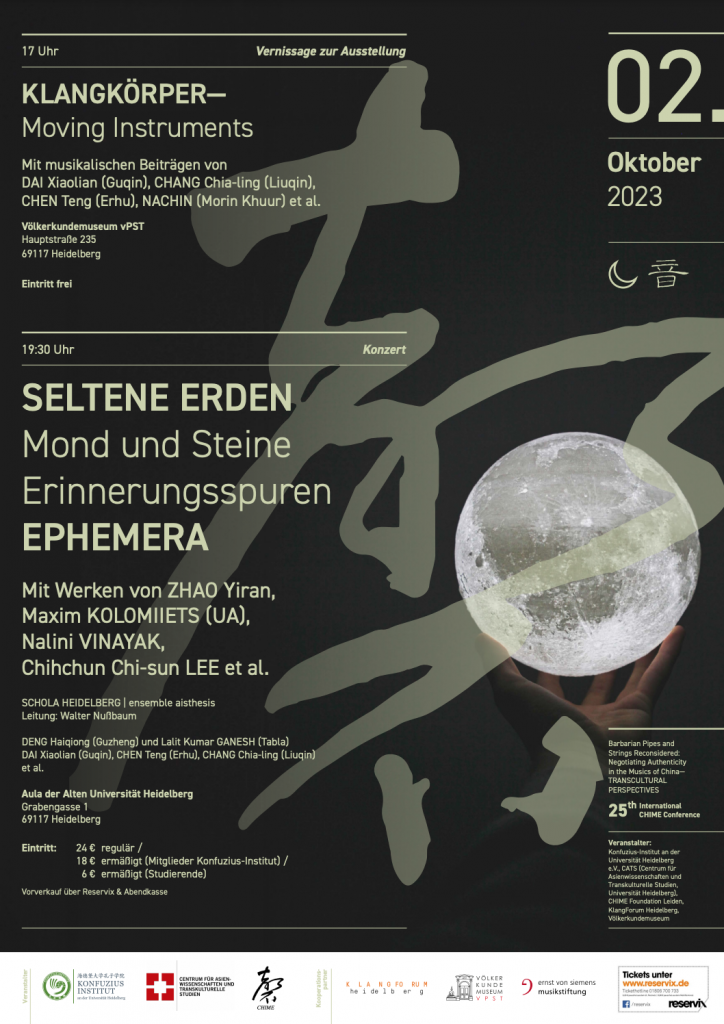 Genau 25 Jahre nach der letzten Internationalen CHIME (Chinese Music Research Europe) -Konferenz in Heidelberg, Barbarian Pipes and Strings veranstaltet das Centrum für Asienwissenschaften und Transkulturelle Studien (CATS) gemeinsam mit dem Konfuzius Institut und dem KlangForum Heidelberg eine Konferenz, die Chinas musikalische Praktiken aus transkultureller Perspektive neu betrachtet. Wie gefährlich, fremdartig oder (un)authentisch bestimmte musikalische Stile oder Instrumente wohl sind, und wem sie „gehören“, sind durchaus relevante Fragen in einem Land, wo Melodien, Instrumente und Klänge von „anderswo“ seit jeher zum „typischen“ Repertoire gehören. Kontroversen über Eigentums- und Urheberrechte an alten und neuen Volksliedern oder regionalen Opern und Klagen über Exotismus oder Selbstorientalismus spielen immer dann eine Rolle, wenn von unterschiedlicher Seite „Authentizität“ beansprucht, angefochten oder neu verhandelt wird. 5 Konzerte, die „Chinas“ vielfältige musikalische Praktiken—von der Guqin über die Tabla, vom Akkordion zur Morin Khuur, immer wieder neu reflektieren, begleiten die Konferenz. Zu hören sind wandelbare Klangkörper—Instrumente und Melodien, die ihre Form und ihren Klang auf ihren musikalischen Reisen, u.a. entlang der Seidenstraße verändern; seltene, ephemere Klangtexturen als Spuren musikalischer Erinnerung im transkulturellen Dialog, und schließlich eine fulminante Intervention von WANG Ying zu Gustav Mahlers “Das Lied von der Erde” (UA 1911), das als Ausnahmewerk in der Reihe der Sinfonien Gustav Mahlers, in der Tradition des musikalischen Exotismus steht. WANG stellt Mahlers Vertonung altchinesischer Lyrik in der Nachdichtung durch Hans Bethge eine Reihe von chinesischen Gegenwartsdichtern und ihre Erinnerungen an die Klänge chinesischen Protest-Rocks gegenüber und schließt so unseren dieser transkulturell gedachten „chinesischen“ Reise um die Erde.
